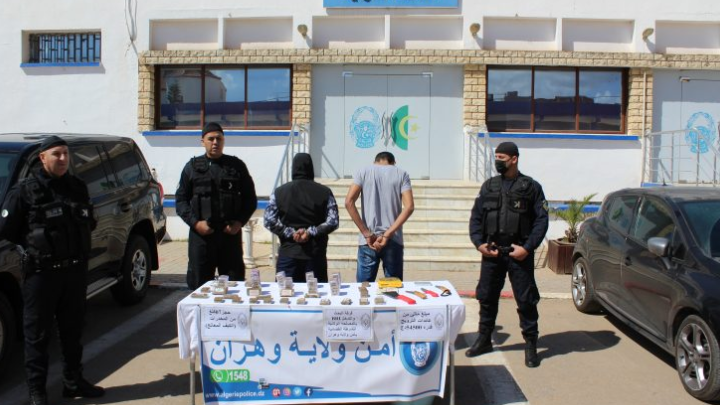 إستطاعت فرقة البحث والتدخل BRI التابعة للمصلحة الولائية للشرطة القضائية بأمن ولاية وهران ، من الإطاحة بشبكة إجرامية منظمة أفرادها متورطون في قضية جناية التهريب الدولي للمخدرات (الكيف المعالج )حيازتها شحنها نقلها باستعمال مركبات ذات محرك ، تسليمها وتخزينها لغرض الاتجار فيها ضمن شبكة إجرامية منظمة عابرة للحدود، جناية التهريب الدولي التي من شأنها الإضرار بالاقتصاد الوطني و الصحة العمومية ، تسيير وتنظيم وتموين جماعة إجرامية منظمة ،الحيازة على أسلحة بيضاء محظورة دون مبرر شرعي ، أسفرت العملية عن توقيف 02 تتراوح أعمارهما مابين 37 و44سنة ، مسبوقين قضائيا