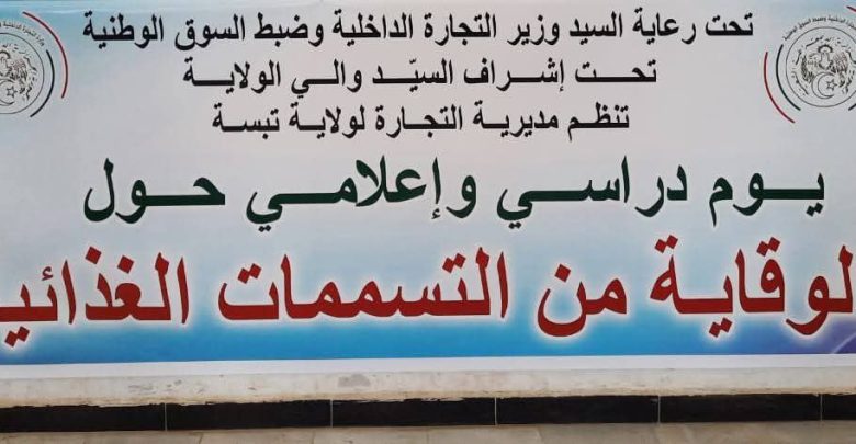 نظّمت مديرية التجارة لولاية تبسة، الخميس يوما دراسيا وإعلاميا تحت شعار: “معًا لصيف آمن بدون تسممات غذائية”، احتضنه قصر الثقافة محمد الشبوكي، بحضور ممثلين عن مختلف القطاعات ذات الصلة ومشاركة جمعيات فاعلة في مجال حماية المستهلك.