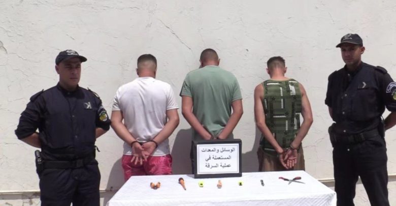 أما بخصوص القضية الثانية فتعود إلى تاريخ 23/08/2025، على إثر تلقي مكالمة هاتفية من طرف أحد المواطنين عبر الرقم الأخضر “1548” ، مفادها قيام مجموعة من الأشخاص بسرقة كوابل هاتفية وأنترنت بأحد الأحياء السكنية، تدخلت قوات الشرطة بعين المكان، تمكنت من ضبط 03 أشخاص في حالة تلبس بسرقة الكوابل النحاسية، تتراوح أعمارهم مابين 24 و 41 سنة، مع حجز أدوات ومعدات تستعمل في عملية السرقة، كما نجحت المصلحة في إسترجاع كمية معتبرة من الكوابل النحاسية محل سرقة تقدر بـ 240 متر.