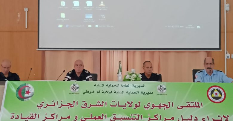 في اطارعصرنة قطاع الحماية المدنية ، نظمت المديرية العامة للحماية المدنية الملتقى الجهوي للفرق الخاصة بالتدخل الأولي على مستوى قاعة الاجتماعات الخاصة بالمركز الثقافي الاسلامي الشهيد مسعودي عباس بأم البواقي، حيث أشرف السيد مدير تنظيم وتنسيق الإسعافات رفقة السيد مدير الحماية المدنية للولاية ، على إعطاء اشارة الانطلاقة الرسمية لفعاليات هذا التجمع الجهوي الخاص بولايات الشرق الجزائري ،تحت عنوان مناقشة وإثراء الدليل الخاص بتسيير مراكز التنسيق العملي وكذا مراكز القيادة ، ويتمثل هذا اللقاء ، المنظم فضاء لتبادل المعلومات و مناقشة دليل تسيير مراكز التنسيق العملي ومراكز القيادة الجديد الخاص بفرق الدعم والتدخل الأولي ، والرتل المتنقل لمكافحة حرائق الغابات ، بإشراف من إطارات من المديرية العامة للحماية المدنية وبحضور رؤساء مصالح الحماية العامة وكذا رؤساء مراكز التنسيق العملي الى جانب رؤساء فرق الدعم والتدخل الأول حيث من المنتظر أن يتميز هذا التجمع باستخدام التكنولوجيات الحديثة في تسيير الأزمات و استغلال المعلومات العملياتية بصفة دقيقة وآنية ويتعلق الأمر بحضور 14 ولاية من الشرق الجزائري.