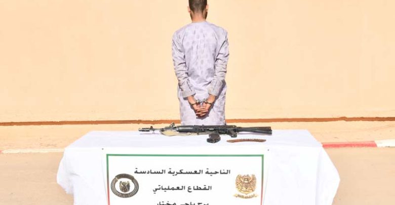 في إطار مكافحة الإرهاب وبفضل جهود مصالح الأمن التابعة للجيش الوطني الشعبي، سلّم الإرهابي المُسمى “ملاوي باي” المدعو”مقداد” نفسه للسلطات العسكرية ببرج باجي مختار بالناحية العسكرية السادسة، يوم 18 جانفي 2023. الإرهابي الذي التحق سنة 2012 بالجماعات الإرهابية الناشطة بمنطقة الساحل، كان بحوزته مسدس (01) رشاش من نوع كلاشنيكوف ومخزن (01) وكمية من الذخيرة.