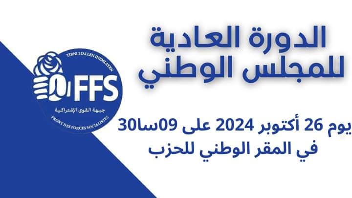 استدعى يوسف أوشيش الأمين الوطني الأول لجبهة القوى الإشتراكية، المجلس الوطني للحزب، للإجتماع في دورته العادية، وهذا يوم السبت 26 أكتوبر الجاري، صباحًا، في المقر الوطني للحزب.