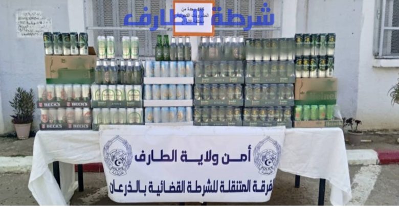 تمكنت الفرقة المتنقلة للشرطة القضائية الذرعان التابعة لأمن ولاية الطارف من توقيف شخصان ينشطان في بيع المشروبات الكحولية بدون رخصة و بطريقة غير شرعية المعنيان في العقد الخامس و السابع من العمر ينحدران من بلدية الذرعان ولاية الطارف. العملية جاءت على اثرمعلومات مفادها قيام صاحب مخمرة غير شرعية بجلب كمية معتبرة من المشروبات الكحولية لغرض بيعها بطريقة غير مشروعة اثر ذلك قام عناصر الفرقة بوضع خطة امنية عملياتية و بالتنسيق مع وكيل الجمهورية لدى محكمة الذرعان و بعد استصدار اذونات بتفتيش المسكنين تم ضبط كمية من المشروبات الكحولية قدرت ب 344 وحدة خمر اين انجز ضدهما ملف قضائي عن قضية حيازة مشروبات كحولية لغرض البيع بدون رخصة ،قدما بموجبها أمام الجهات القضائية المختضة اقليميا.