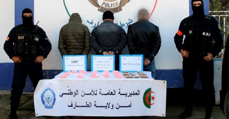 تمكنت فرقة شرطة الحدود البرية بأم الطبول بالتنسيق مع مفتشية أقسام الجمارك بالطارف من توقيف 3 أشخاص اعمارهم ما بين 27سنة و 42سنة ينحدرون من ولاية الطارف و ولاية مجاورة، ضبط بحوزتهم 1987 قرص مخدرات صلبة، 10 الاف دينار تونسي مع حجز مركبة سياحية.قضية الحال جاءت على إثر توقيف مركبة سياحية كانت بصدد الدخول للتراب الوطني على مستوى المركز الحدودي البري بأم الطبول بالطارف، بعد تفتيشها تم ضبط كمية المخدرات الصلبة نوع “اكستازي” مخبأة بإحكام داخل تجاويف المركبة المحجوزة ،فيما أفضت التحريات المعمقة التي باشرها محققو فرقة البحث و التدخل BRI بالمصلحة الولائية للشرطة القضائية لأمن ولاية الطارف، تحت إشراف النيابة المختصة إقليميا، إلى كشف المخطط الإجرامي المتمثل في نقل وتهريب المخدرات الصلبة بطريقة غير مشروعة، قصد إدخالها للتراب الوطني وترويجها