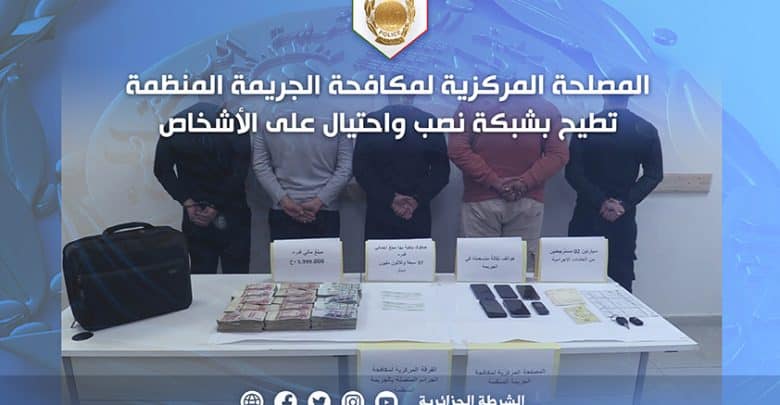 وتمكّنت المصلحة المركزية لمكافحة الجريمة المنظمة التابعة للمديرية العامة للأمن الوطني، من تفكيك شبكة وطنية تتكون من 5 أشخاص مشتبه فيهم، تتراوح أعمارهم بين 31 و59 سنة، مُتورطين في قضية النصب والاحتيال، تبييض الأموال وانتحال صفة.