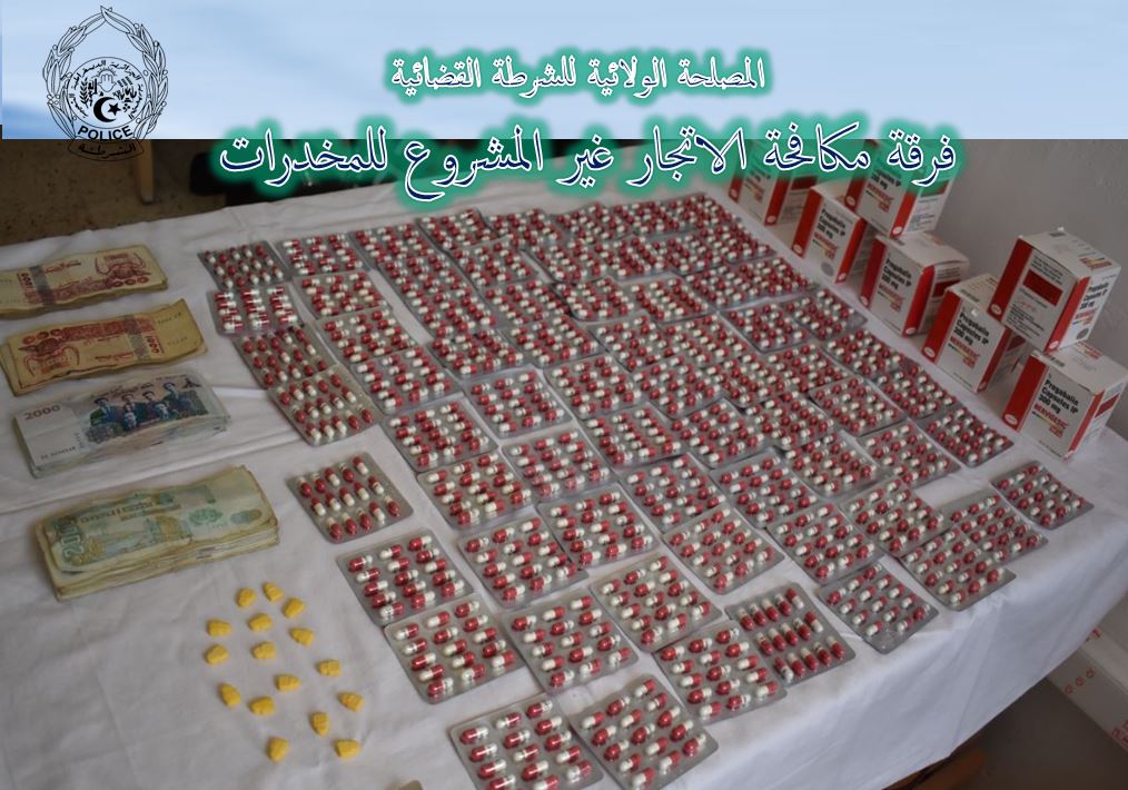 فرقة مكافحة الاتجار غير الشرعي للمخدرات بالمصلحة الولائية للشرطة القضائية بأم البواقي توقف اربعة اشخاص وتحجز 1049 كبسولة “بيرغابلين” 300 ملغ و 13 قرص من المخدرات الصلبة “اكستازي” اضافة الى مبلغ مالي من عائدات الترويج .