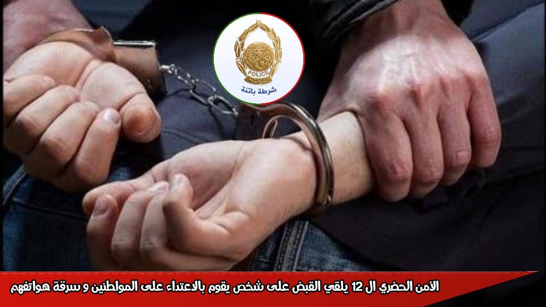 افاد بيان لخلية الاعلام والاتصال لامن ولاية باتنة ان عناصر الأمن الحضري الـ 12 بتوقيف شخص يبلغ من العمر 25 سنة مسبوق قضائيا بناء على عدة شكاوى تلقاها عناصر المصلحة من قبل المواطنين لاسيما فئة النساء و الأطفال حيث يقوم المشتبه به بالاعتداء عليهم بواسطة بخاخة مسيلة للدموع و سرقة هواتفهم أين تم انجاز ملف جزائي ضده و تقديمه أمام النيابة المحلية