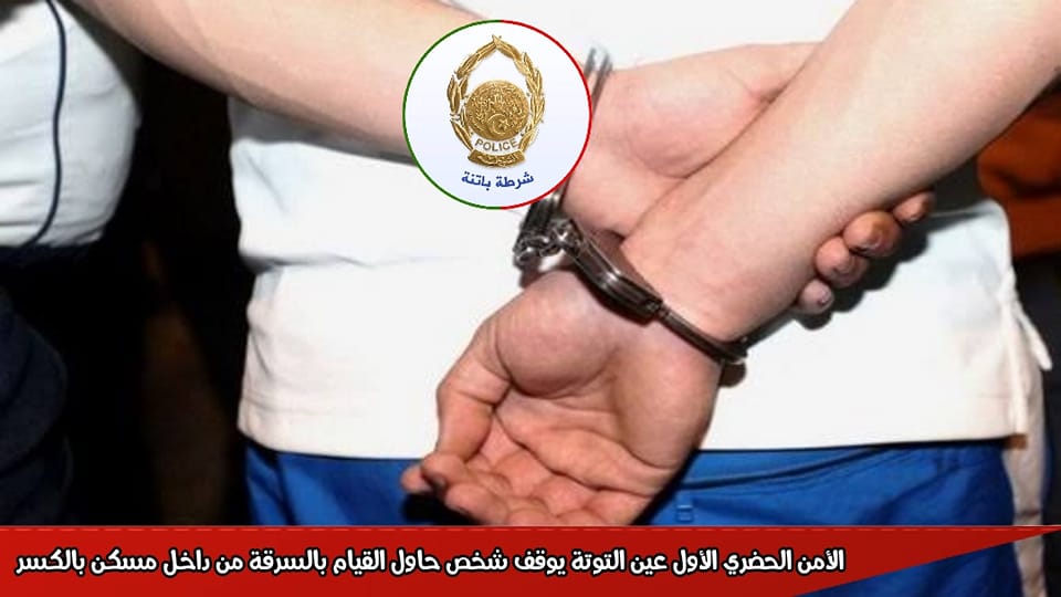بناء على مكالمة هاتفية تلقتها عناصر المناوبة بالأمن الحضري الأول عين التوتة من قبل مواطن بخصوص تعرض مسكنه لمحاولة السرقة من داخل مسكنه بالكسر بحي 50 + 50 حمادة عين التوتة ليتم توقيف الفاعل البلغ من العمر 29 سنة مع انجاز ملف جزائي ضده و تقديمه امام الجهات القضائية المختصة اقليميا.