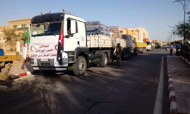 أشرفت وزيرة التضامن الوطني والأسرة وقضايا المرأة السيدة كوثر كريكو صبيحة اليوم على إعطاء إشارة إنطلاق قافلة تضامنية من ولاية تندوف، بإتجاه مخيمات اللاجئين الصحراويين محملة بحوالي 154 طن من المواد الغدائية و 263100 وحدة من المستلزمات الطبية والصيدلانية، وبحضور رئيسة الهلال الأحمر الجزائري السيدة سعيدة بن حبيلس والسلطات المحلية، وقد تم نقل المساعدات بطائرات القوات الجوية من مطار بوفاريك العسكري إلى مطار تندوف ليتم بعد ذلك توزيعها على 14 شاحنة منها 09 شاحنات، وجاء في تصريح للويزة أن الهبة ليست الأولى ولن تكن الأخيرة للشعب الصحراوي.