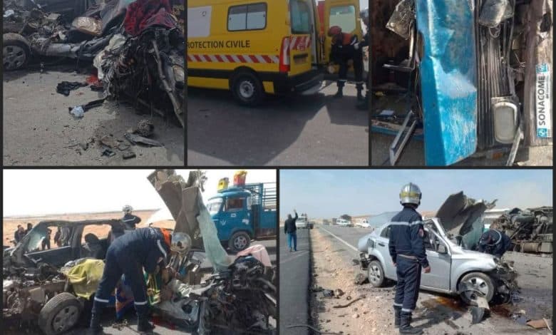 وقد أسفر الحادث عن وفاة شخصين في عين المكان متأثرين بإصابات بليغة، فيما أصيب ثلاثة أشخاص آخرين بجروح متفاوتة الخطورة.
