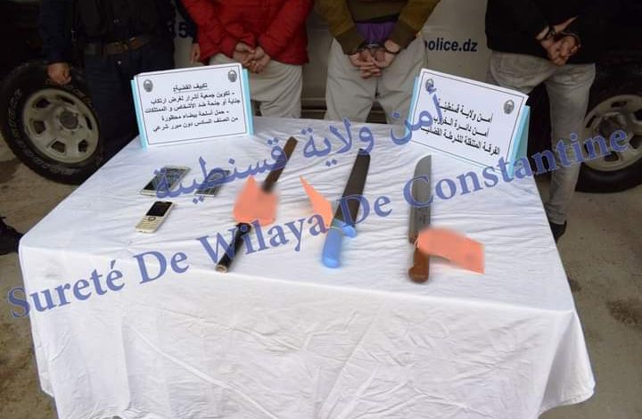 تمكنت أمس الفرقة المتنقلة للشرطة القضائية لدائرة الخروب على إثر دورية ليلية وقائية من توقيف ثلاث أشخاص على مستوى الوحدة السكنية “الضريح” بالمدينة الجديدة ماسينيسا، هذا وقد تم حجز أسلحة بيضاء من الحجم الكبير كانوا يعدون لاستعمالها في عملية السطو والإعتداء