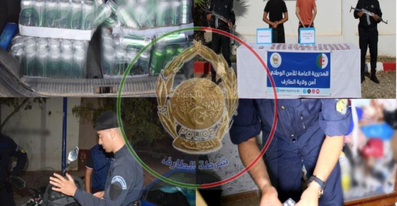 تمكنت مصالح أمن ولاية الطارف ممثلة في أمن دائرة الذرعان على اثر عمليات مداهمة باقليم الاختصاص، استهدفت مختلف اوكار الجريمة والأماكن المشبوهة التي يتردد عليها المسبوقين قضائيا، وتحت إشراف النيابة المختصة اقليميا لدى محكمة الذرعان، مكنت من توقيف 45 شخص متورطين في قضايا جزائية ومحل بحث من طرف الجهات القضائية أعمارهم ما بين 20 و 55 سنة من بينهم تم توقيف 05 مروجين للمخدرات و المؤثرات العقلية مع ضبط 154 قرص مؤثر عقلي، كمية من الكيف المعالج معدة للبيع، اسلحة بيضاء محظورة “سيوف سكاكين” و دمبالغ مالية من العائدات الإجرامية إضافة إلى18 شخص متورطين في قضايا حيازة مخدرات و مؤثرات عقلية مع حجز كميات منها،وكذا توقيف 17 شخص محل بحث بموجب اوامر قضائية و اوامر بالحبس و تنبيهات بعدة قضايا جزائية. كذلك توقيف 03 اشخاص متورطين في حمل أسلحة بيضاء محظورة مع حجز مجموعة منها وتوقيف شخصان متورطان في حيازة و نقل مشروبات كحولية بدون رخصة مع حجز 325 وحدة من المشروبات الكحولية