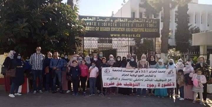 إحتج المئات من حاملي شهادة الدكتوراه ، الاثنين 9ماي 2022أمام مقر مبنى وزارة التعليم العالي و البحث العلمي ببن عكنون بالجزائر العاصمة، لمطالبة الوصاية بالتوظيف المباشر بمجرد الحصول على شهادة الدكتوراه و تصحيح إختلالات القرارات السابقة المتعلقة بشروط التوظيف كالتخصص و نقطة المقابلة و أقدمية الشهادة كمعايير للتوظيف في المؤسسات و الإدارات العمومية و الإقتصادية .