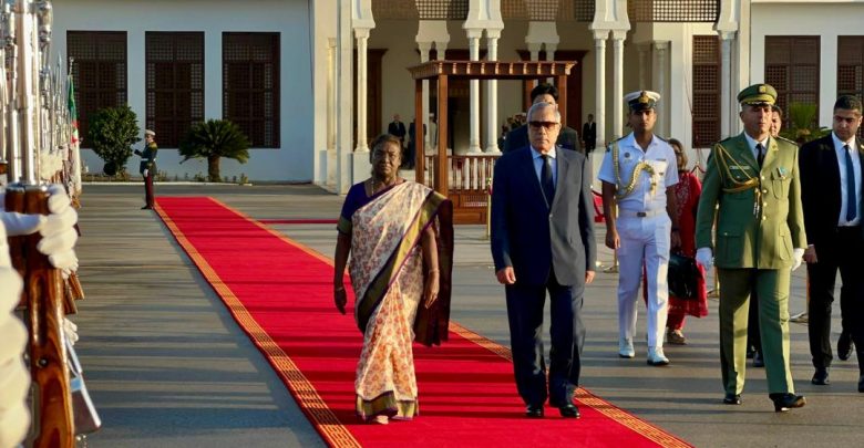 ومن ابرز محاور الزيارة، المحادثات المكثفة التي أجراها رئيس الجمهورية السيد عبدالمجيد تبون مع رئيسة جمهورية الهند التي تم خلالها استعراض التعاون الثنائي وآفاق تطويره في مختلف المجالات بالإضافة الى القضايا الإقليمية والدولية الراهنة.