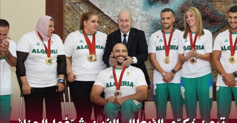 كرم رئيس الجمهورية عبد المجيد تبون, اليوم الاثنين بقصر المرادية, الرياضيين الذين شرفوا الجزائر فيبحضور كبار المسؤولين في الدولة وأولياء الأبطال وطواقمهم الفنية باريس 2024.