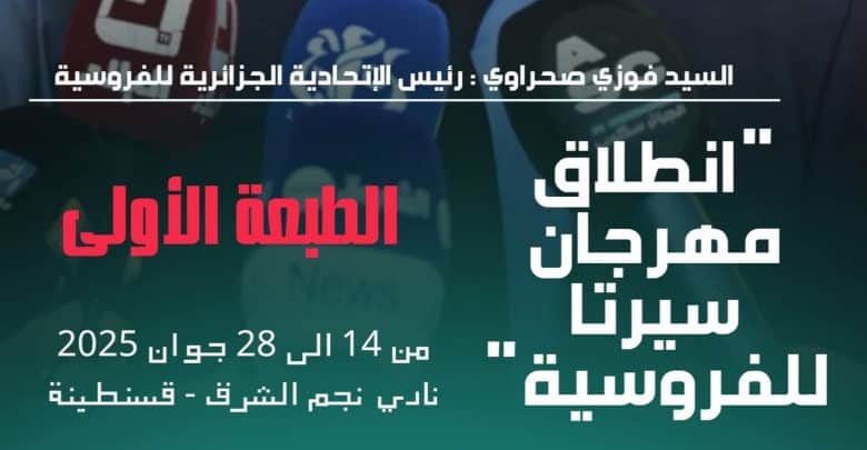 يشهد نادي الفروسية نجم الشرب بمنطقة عين عبيد بقسنطينة فعاليات الطبعة الأولى من مهرجان “سيرتا للفروسية”، المنظم من 18 إلى 25 جوان الجاري، بمبادرة من الاتحادية الجزائرية للفروسية، بالتنسيق مع أصحاب النادي.