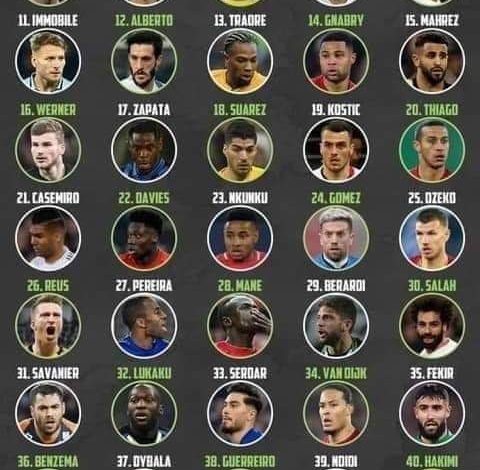 ▪المغربي أشرف حكيمي في المرتبة 40.